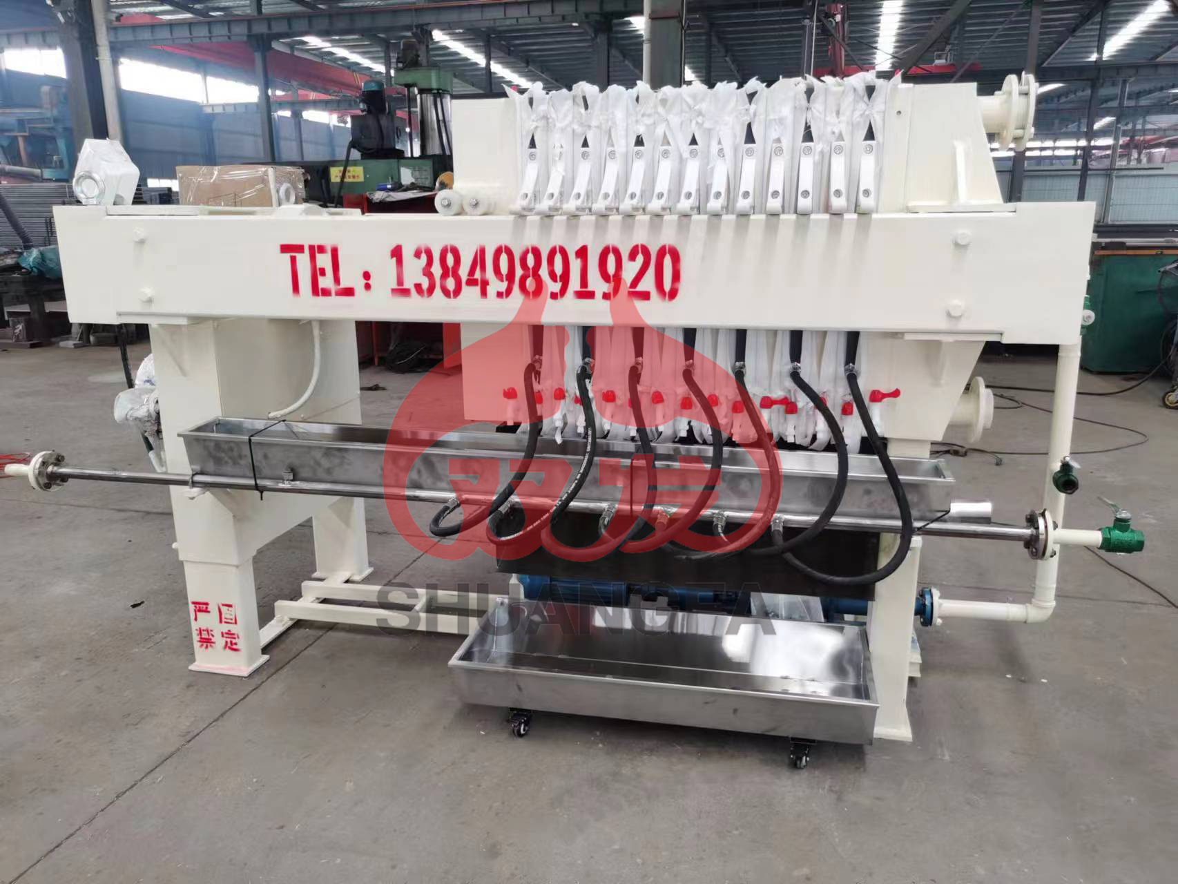 壓濾機(jī)的自動(dòng)接液翻版是安裝在濾板下方的一種集液裝置,當(dāng)壓濾機(jī)在進(jìn)料時(shí),濾板下方滲漏部分液體,流入翻板后(自動(dòng)集水盤)順流到壓濾機(jī)兩邊,通過集液槽匯入集中池。